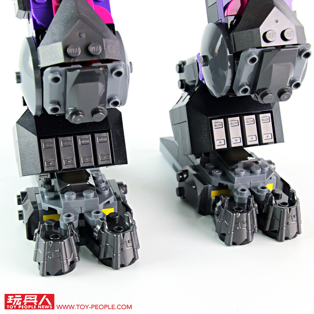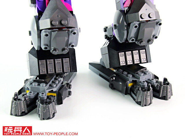 ▼ 腳板部分運用多個金色的弧面磚、平面磚修飾線條,腳底還以橡皮材質的輪胎增加摩擦力,讓機甲本體能有更好的穩定性。