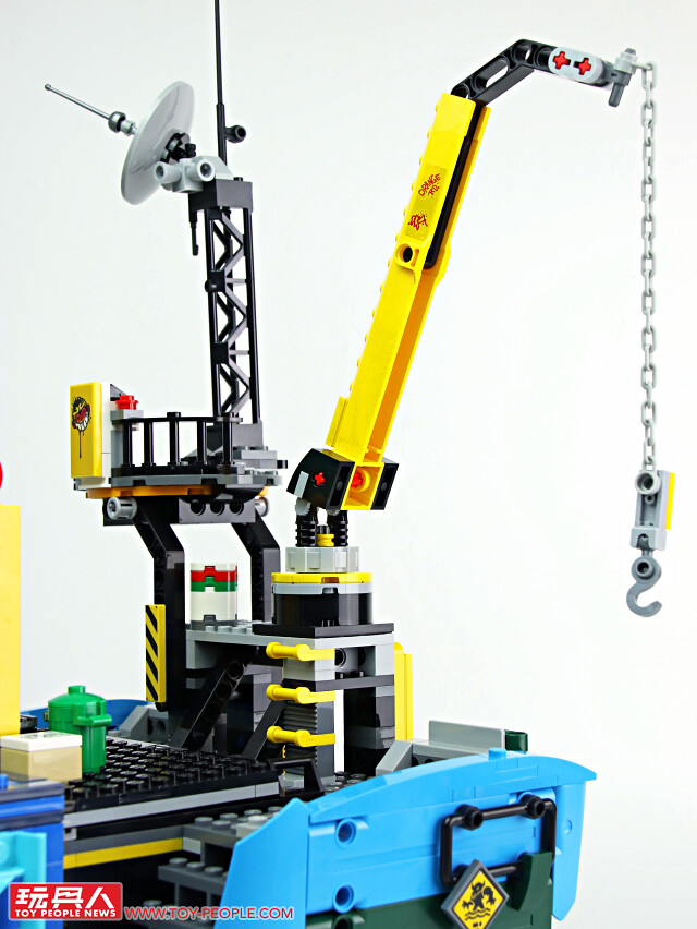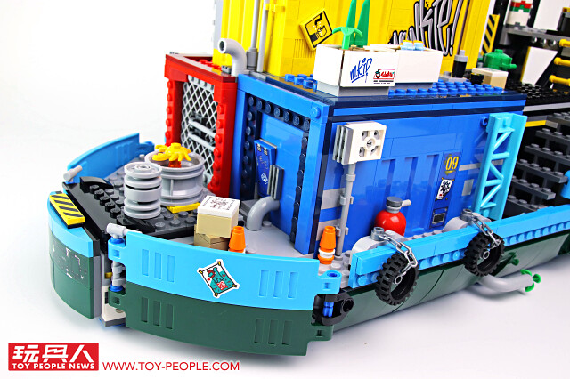 ▼ 組裝完成的長度逼近 40 公分,外觀完整性高,船頭的線條也很漂亮,並以多種顏色的貨櫃、可動吊臂、雷達增添視覺上的豐富度。