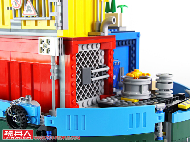 ▼ 除了滅火器、水管、抽風機、堆雜物的箱子這些細節外,在船頭還可以看到以雲霄飛車軌道表示的爬梯,用鐵鍊零件把輪胎固定也非常有感!