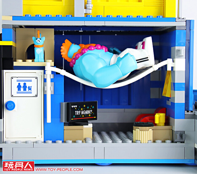 ▼ 再來是符合沙大力(Sandy)龐大體格的大吊床跟貓咪的小屋,還有廁所、可以坐在沙發上打電動的休息空間。
