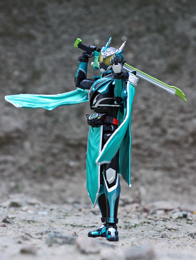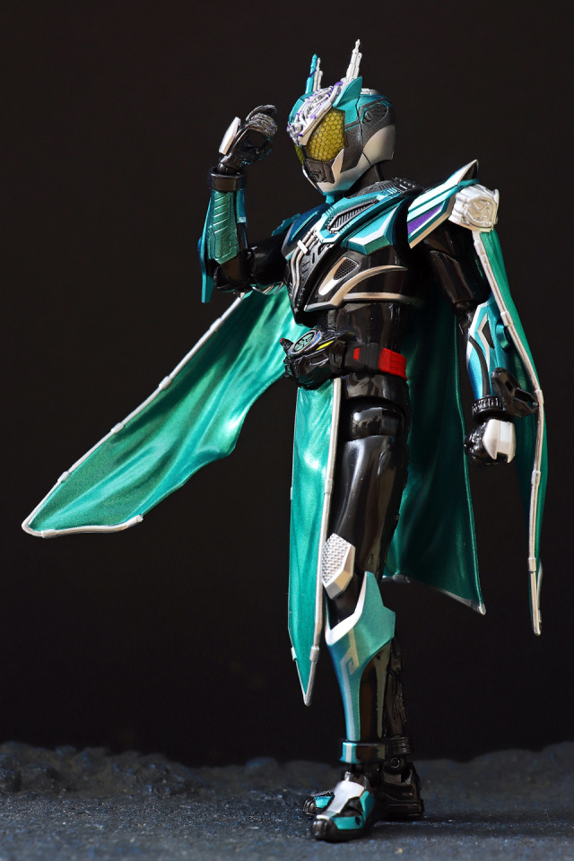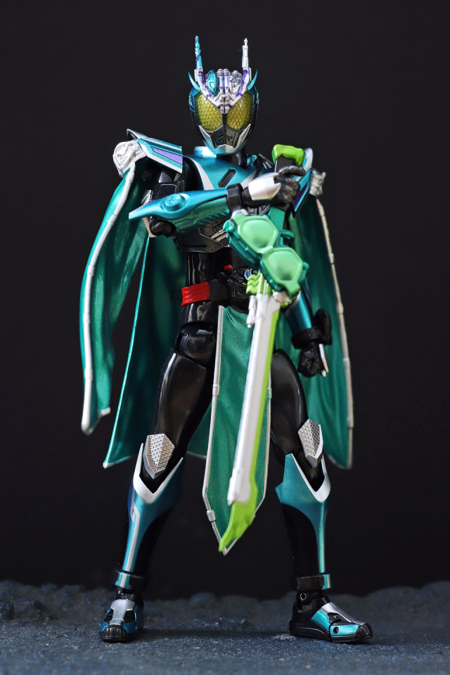 主體高約 145 mm,全身以金屬綠、銀及黑色為主。配件很少,只有交換用手形共 6 種及 Brain 眼鏡劍等。相比其他幪面超人可玩性低很多!