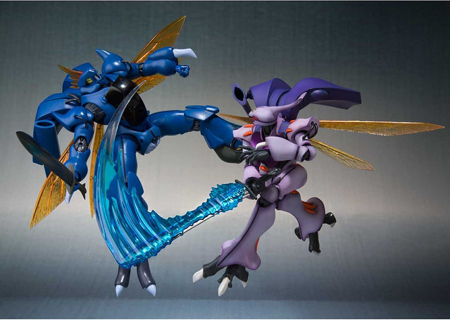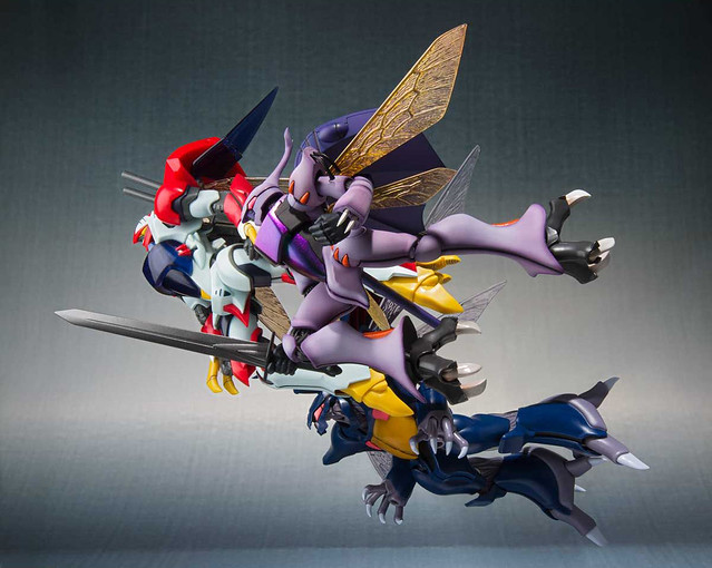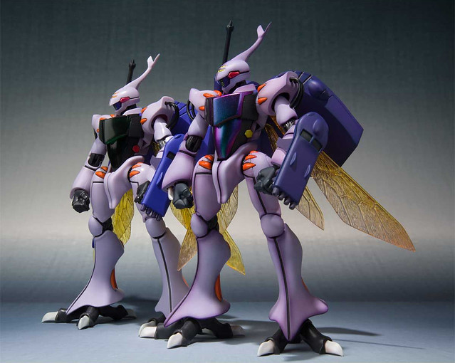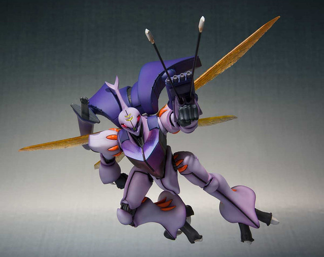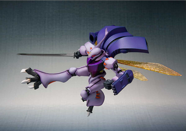 這款 Shadow Finish 版本的丹拜因,是將之前推出過的主角機,試圖增加陰影、胸部偏光色彩,翅膀透明塗裝等等,讓整體色彩更加鮮豔,以期整體感覺能夠更接近昆蟲的質感。另外在手部的地方,加上了可以發射出的飛爪特效件,對於有買過丹拜因的朋友來說,這款新版的 Shadow Finish 可以有另一種全新感受。喜歡聖戰士丹拜因的朋友別錯過。