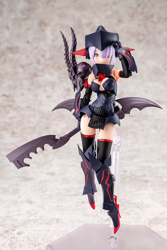 「女神裝置 銃彈騎士 行刑者」預計 05 月下旬開放預購,運用過去曾在擴充武裝 M.S.G. 系列推出的「鐮刀」、「側邊披風」等造型,以及新規造型的可掀式頭盔與胸部零件,再次將銃彈騎士修改成帥氣的「行刑者」形象。