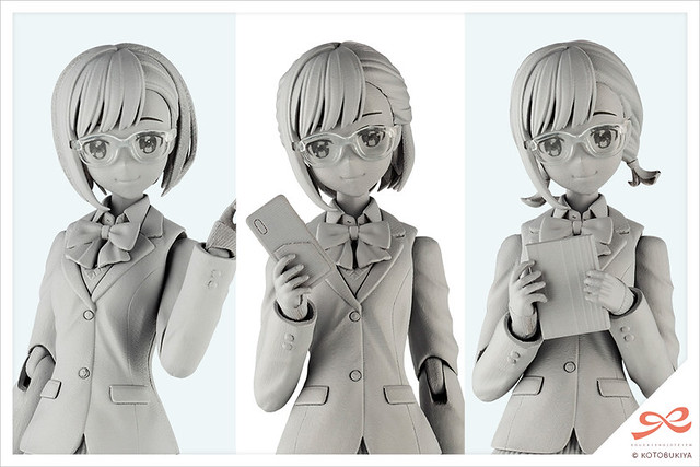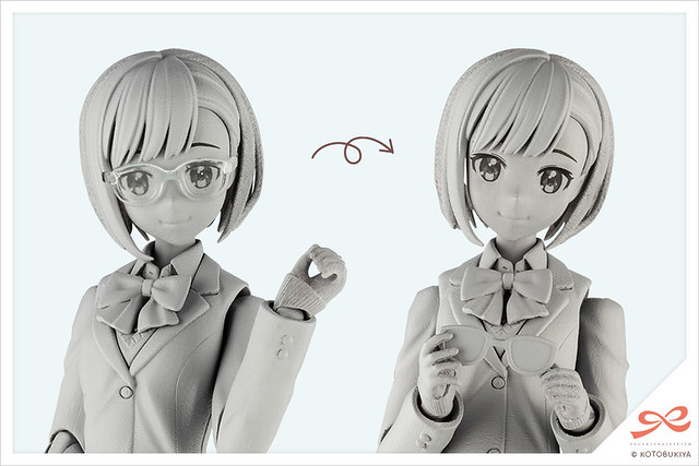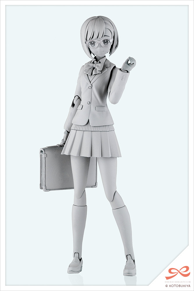 第二彈則是文學少女「小鳥遊暦【令法高等學校・冬季制服】」,套件內附三種風格的髮型以及四種表情零件,眼鏡也能自由拆卸搭配。裙子零件包含一般狀態、飄起狀態、坐姿用三種,隨身小物則有書包、智慧型手機與書本。