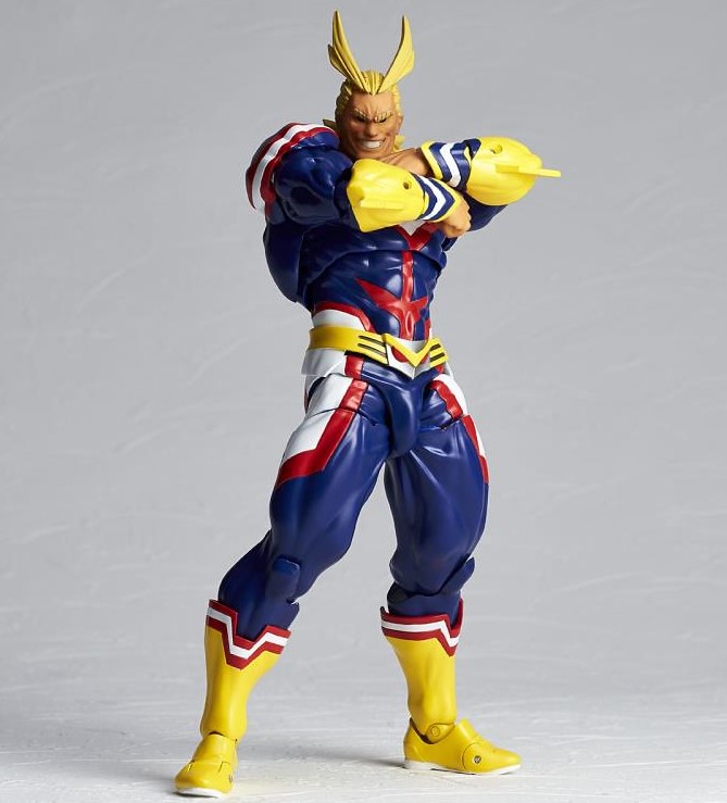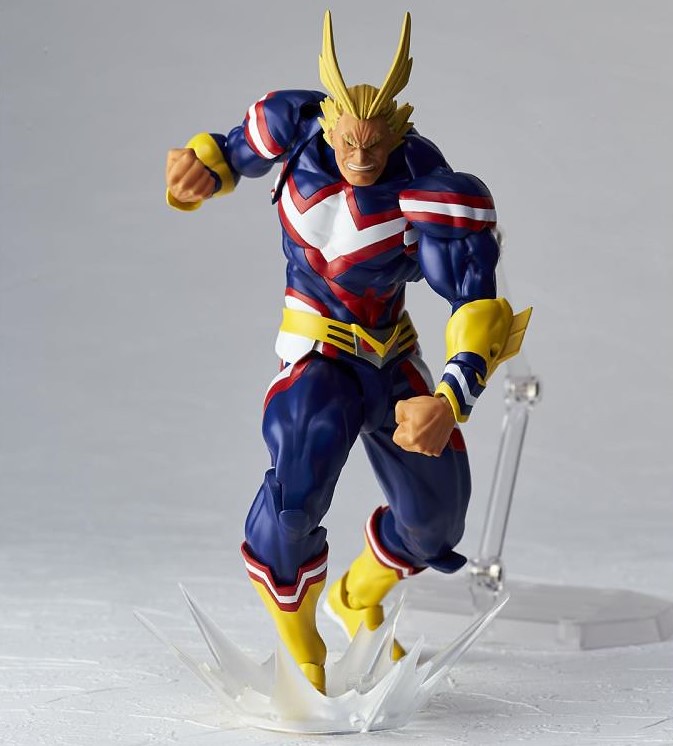 「Amazing Yamaguchi 歐爾麥特」可動人偶,全高約 19 公分,全身共計 32 處可動,精緻再現了歐爾麥特英雄服的造型細節,包覆在服裝底下 Muscle Form 時的魄力大肌肉也細膩呈現,充滿強壯的肌肉線條!如此大的身體體積在可動設計下讓胸板兩側分開、整個肩膀都可以前後移動,輕鬆還原戰鬥時強而有力的粉碎招式!身體下半部以球形關節讓腿部也能完美擺飾出各種精彩的站姿與跳躍姿勢,極具躍動感!