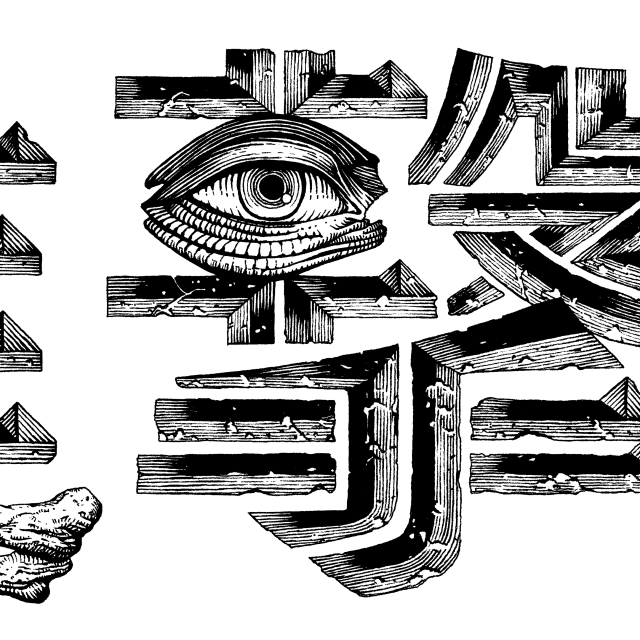 仔細一看,城牆的紋路、肌肉的紋理以及巨人的身軀器官,都成為了文字的一部份,大大地凸顯出《進擊的巨人》中獨有的特色元素,從 MASANOBU 每一處的設計巧思,都不自覺得讓人想起在故事劇中的種種精彩畫面。
