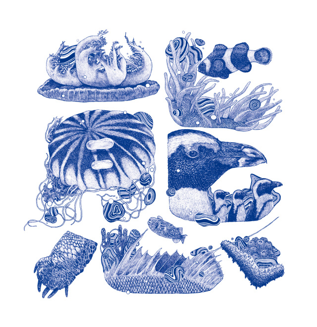 ▼由水生動植物組成的插畫單字,令人忍不住觀賞的「變態予告」