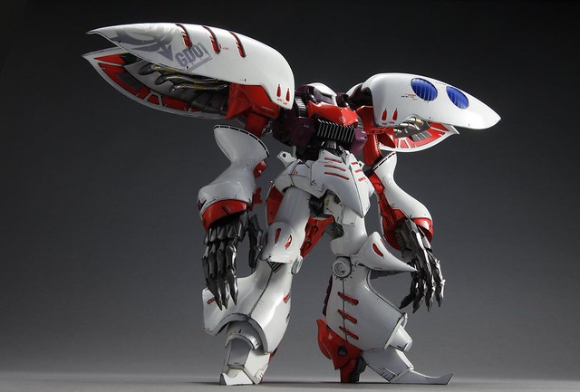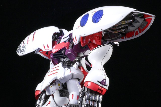 而這次推出的「MG 1/100 丘貝雷.Embellir」可說是還原最初 NAOKI 的作品,採用丘貝雷特徵的紫白配色作為成形色,並且白色裝甲經過 Gross injection 技術處理呈現高光澤感,紫、藍、灰色零件則使用金屬色成形。整體套件與前作「墮獄丘貝雷」相同,特色的巨大雙掌手指僅基部可動。商品中還附上新設計的豪華鏡面貼紙,可用來裝飾丘貝雷圓滑的裝甲面。