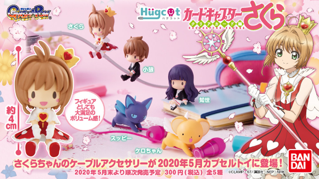 日本 BANDAI 萬代公司(株式会社バンダイ)轉蛋事業部 GASHAPON 旗下的充電線保護套 Hugcot 系列,將推出《庫洛魔法使 透明卡牌篇》為主題的新作商品「 Hugcot 庫洛魔法使」(ハグコット カードキャプターさくら)手機保護套轉蛋,一共五種款式,一轉參考售價為 300 日圓,預計將於 2020 年 5月下旬發售。