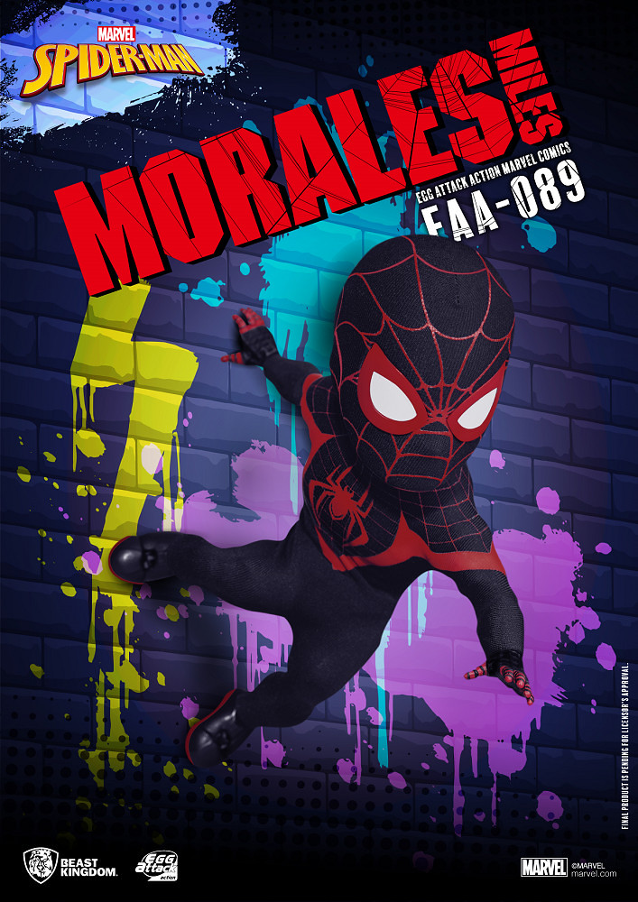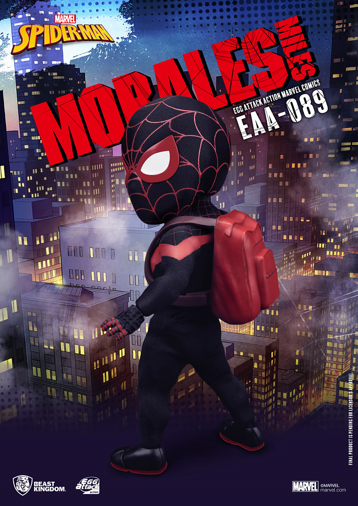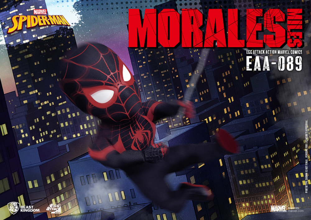 由台灣玩具品牌野獸國(Beast Kingdom)發行,以獨特 Q 版造型、高度可動性為賣點的「Egg Attack Action(EAA)」系列在推出來自《無限之戰》的「鋼鐵蜘蛛」、「鋼鐵蜘蛛豪華版」,《返校日》的「自製戰衣版」,《離家日》的「升級戰衣版」......等多款彼得·帕克的蜘蛛人之後,這次終於輪到另一位大人氣蜘蛛人「邁爾斯·摩拉斯」(Miles Morales)登場!預計將於 2020 年第三季發貨。