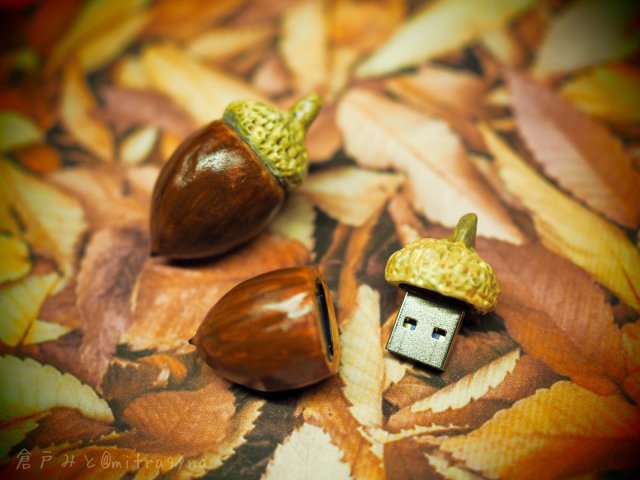 或許這個時候就需要一點自製一些辦公小物來療癒自己的幼小心靈啦!最近在推特上就流行著與真實橡果子大小一樣的嬌小隨身碟,之所以會製作成橡果子的模樣,主要是因為日文中隨身碟「ドングル」的讀音,聽起來橡果子「ドングリ」,而取自諧音製作而成的。