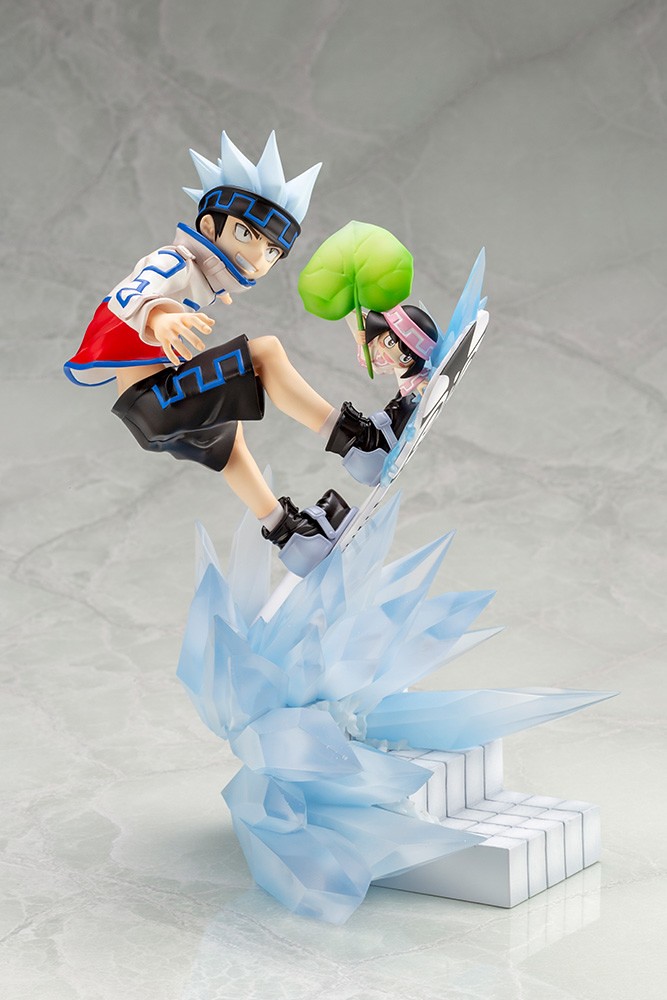 「ARTFX J 轟隆轟隆」高約 22 公分,根據武井宏之老師繪製的插畫為題精彩地立體化,以轟隆轟隆踩在冰雪滑板上、極具動感的姿態設計,高度再現了他的刺蝟頭、充滿自信的笑容,以及衣服跟滑雪板的紋路,一旁拿著葉子的可樂樂超級可愛,並巧妙地形塑出飄浮的視覺效果,底座則是以最符合角色調性的尖銳冰柱與灰白建築來設計,整體真的好帥啊!