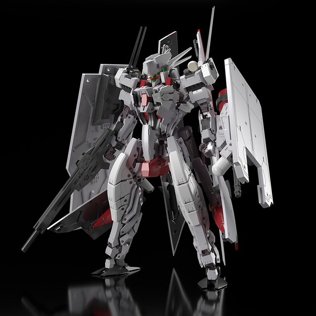 「骨裝機兵 出雲」的造型基於前作金剛修改而來,套件使用新型的骨裝機兵 Renewal ver. 骨架(未組裝),包含頭部、胸部、肩部、膝部、武装等全以新規零件製作,特別在膝部裝甲採用曲線圓滑的設計讓人印象深刻,而武裝部份除了新規設計的步槍、更改為 3mm 軸連接的機關砲外,最具特色的就是懸掛於機身兩側的「飛行甲板」,不僅能作為巨盾保護機身,甲板上更搭載了四架無人攻擊機。出雲同樣也繼承了金剛的變形機構,能從「機器人形態」變形為「艦艇形態」