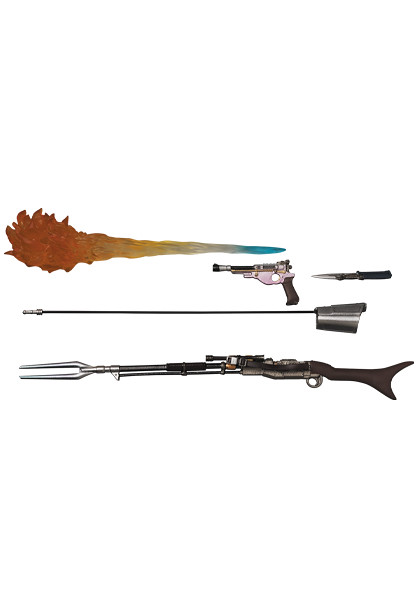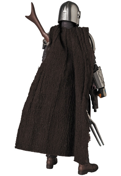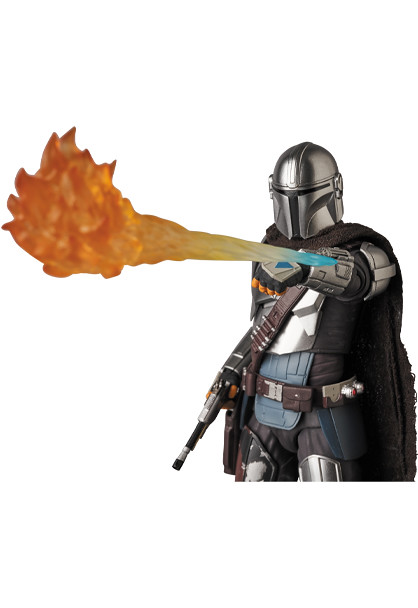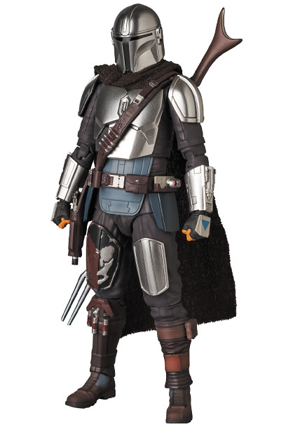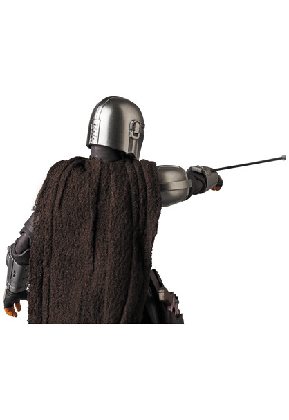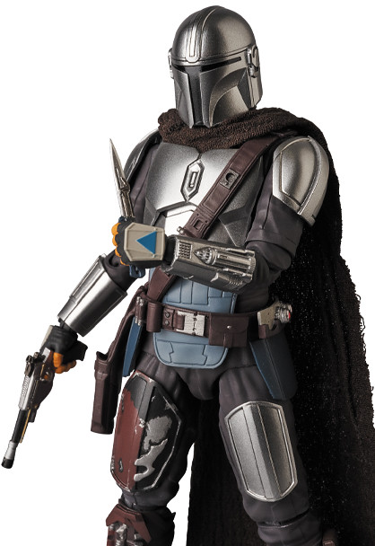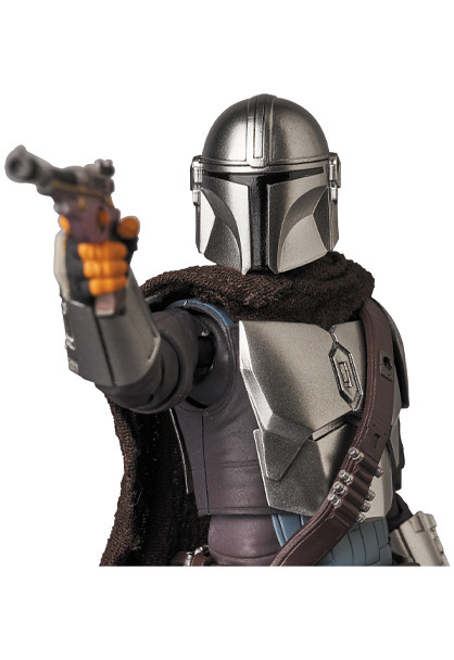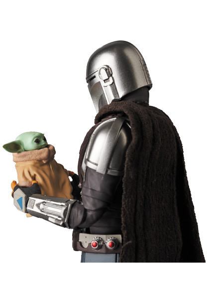「MAFEX 曼達洛人」高約 16 公分,是根據曼達洛人穿上以貝斯卡鋼(Beskar)打造的銀色盔甲造型製作,裝備各處細節、子彈背帶、腰帶與武器的表現相都當不錯,加上布製斗篷,整體更具真實感,武器部分包含特製的爆能步槍(ブラスターライフル)、爆能手槍(ブラスターピストル)、連勾繩的手前臂裝甲、小刀,以及具備色彩漸層變化的火焰發射特效!另外,本作的一大亮點就是附上同為 1/12 比例的「孩子(The Child)」,烏溜溜的大眼、面部輪廓以及斗篷的皺摺皆有著細膩刻畫,《曼達洛人》粉絲絕對要入手!