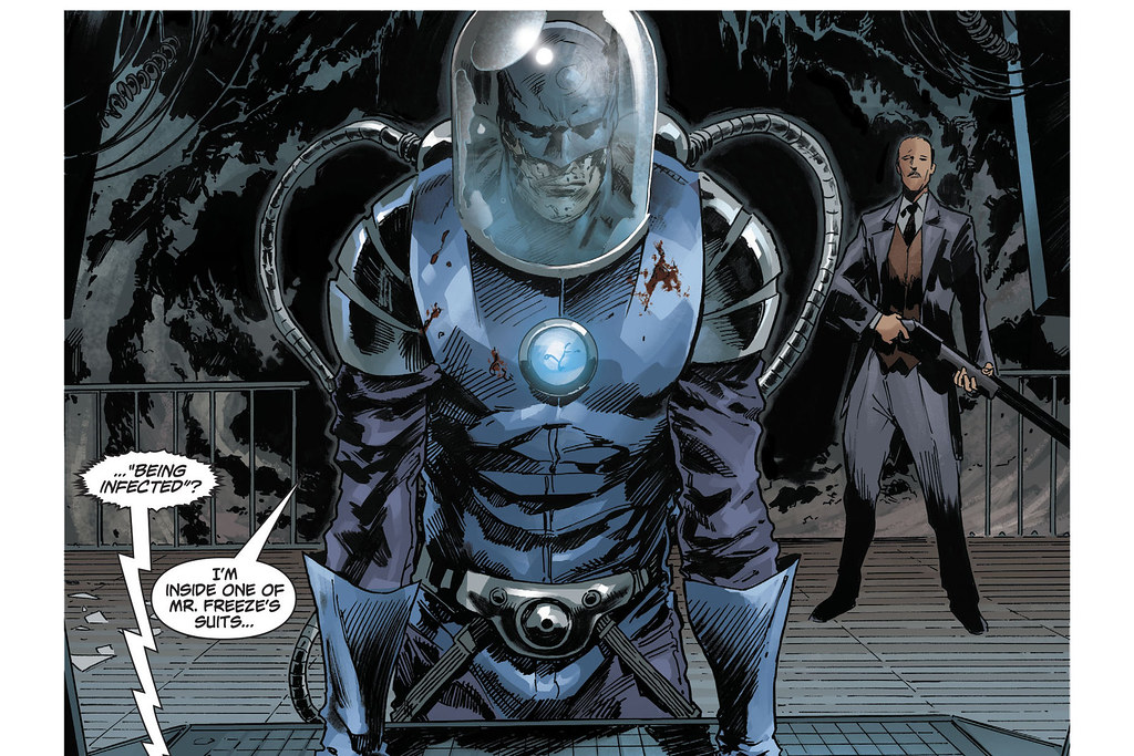 ▼ 為了將事發經過與資訊傳達給僅存的英雄,蝙蝠俠穿上了急凍人的裝備,延緩病發時間。