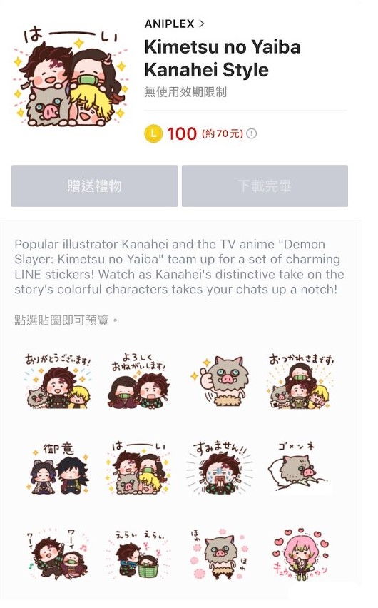而這次一次推出 40 種LINE貼圖,除了在《RIBON》月刊中出現的主角們之外,人氣的冨岡義勇、胡蝶忍、煉獄杏壽郎、甘露寺蜜璃等柱當然也不能少!內從常見的招呼用語到經典名場面都有,包含伊之助發出的「ほわほわ」與「武運昌隆(ご武運を… )」等貼圖,每一款都相當可愛!有興趣玩具人可以參考網頁,但有地區購買限制,台灣的玩具人可能要跨區或是在耐心等待推出中文版啦~