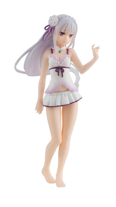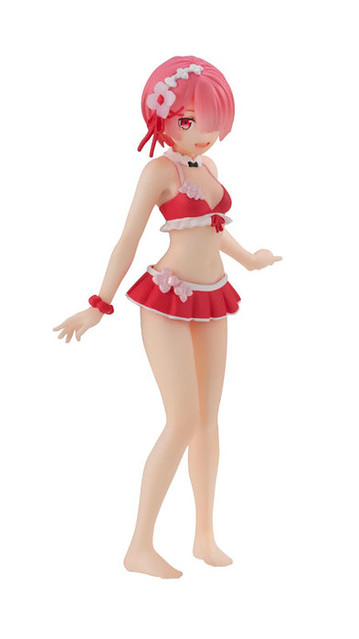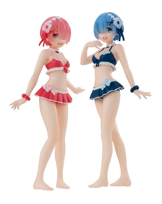 以《Re:從零開始的異世界生活》系列中的三位人氣女性角色「愛蜜莉亞」、「拉姆」、「雷姆」穿著」穿著青春泳裝的造型呈現。