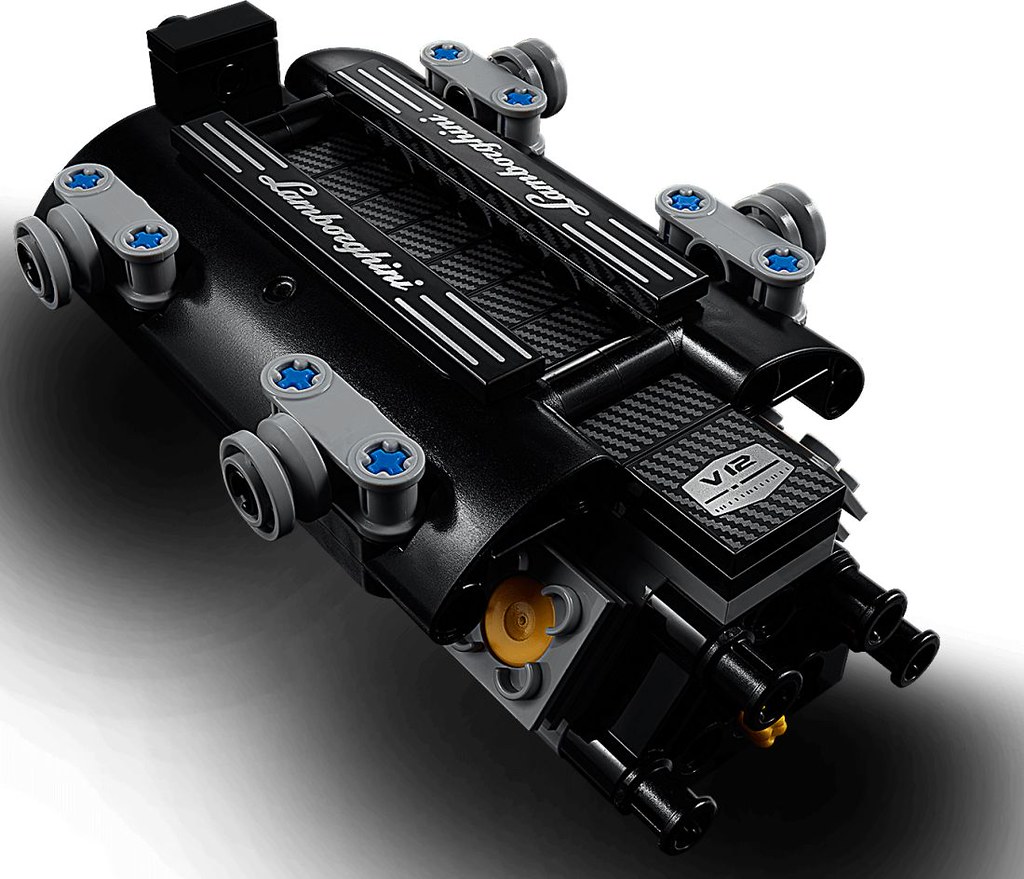 接著看到內部機構,光是看到這張官圖整個組裝魂就燒起來啦~!組裝過程一定相當過癮,既然是科技系列,那迷人的連動機構一定不能少,本作配備了具有可動活塞的 V12 引擎、8 速變速箱,而駕駛座、方向盤也都精美再現,值得一提的是打開引擎蓋還可以看到一個過夜包與能到樂高官網解鎖特殊內容的密碼喔!