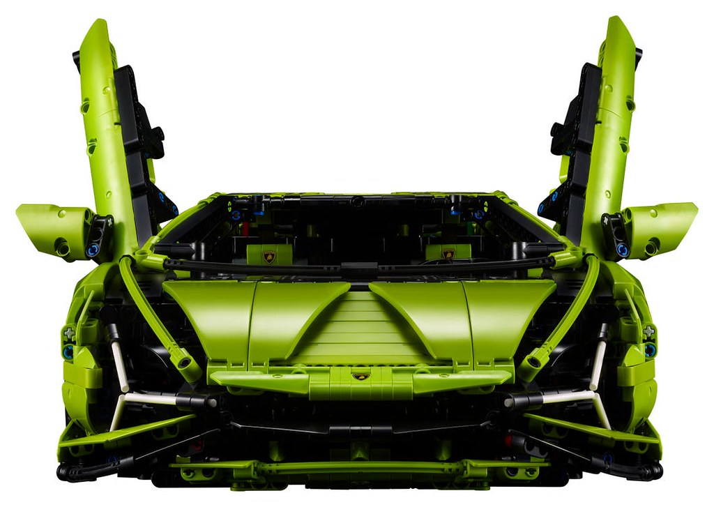 「LEGO 42115 藍寶堅尼 Sian FKP 37」的零件數來到 3696 件,與之前推出的「LEGO 42056 Porsche 911 GT3 RS」、「LEGO 42083 Bugatti Chiron」相同都採用 1/8 比例,組裝完成後長度來到 60 公分,高度則有 13 公分,充分展現樂高力求還原實車造型的企圖心,大面積的萊姆綠車殼加上超大金色輪圈,車頭、Y 字型大燈與細節滿載的屁股更是令人驚艷,而且本作也能藉由按下按鈕來重現鍘刀式車門(Scissor Door)的開啟模樣,擾流板也可像實車一樣彈出!帥翻~!