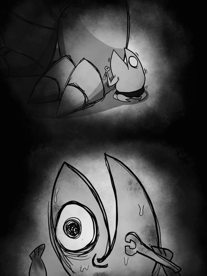 在毛毛二的漫畫故事裡,秋刀魚同學常常都是被吃、被欺負,或是被槍擊的可憐角色,但俗話說得好,可憐之人必有可惡之處,秋刀魚同學自己有的時候也是很討人厭的啦!總而言之,這次秋刀魚同學在實驗室裡靜靜地研究,該如何反擊他在學校稱王的阻礙-一口(小鯊童)與兩口(雙髻鯊),終於,他製作出了恐怖的量產戰線「鐵甲秋刀」!雖然尺寸不到鐵甲鯊力士那樣巨大,可是會採用以量取勝的硬派戰術,而且,鐵甲秋刀竟然還搭載了變形系統!