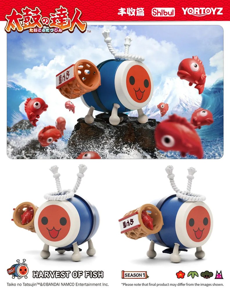 中國玩具品牌 YORTOYS 正式取得萬代南夢宮娛樂授權,推出了以打擊類音樂遊戲《太鼓達人》為主題的作品:第一彈「太鼓達人 豐收篇」盲抽盒玩,共有六款和一款隱藏版,以盲抽方式販售,參考售價為人民幣 78元一盒,預計將於2020年6~7月發售。
