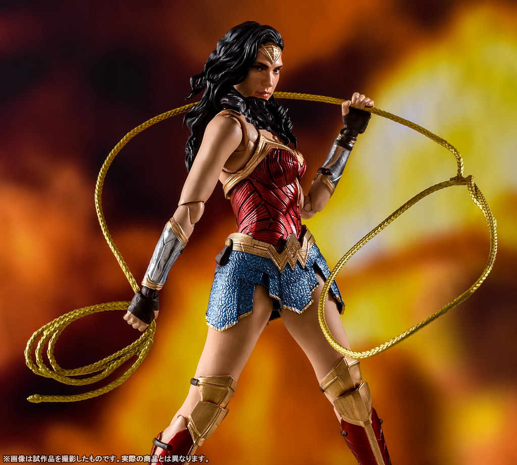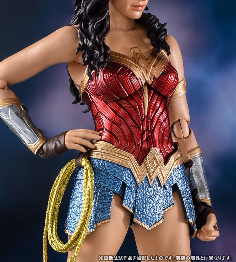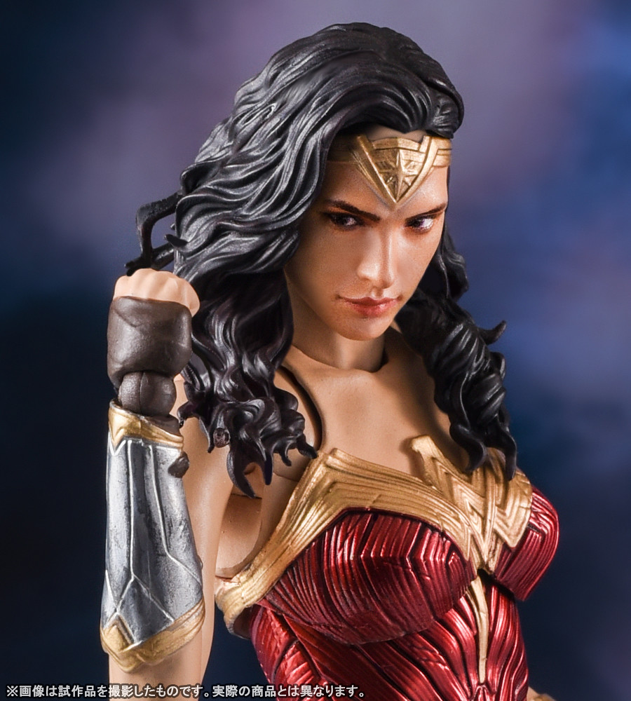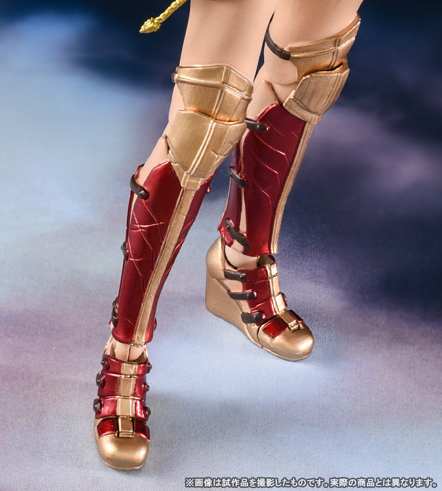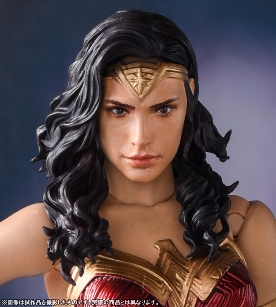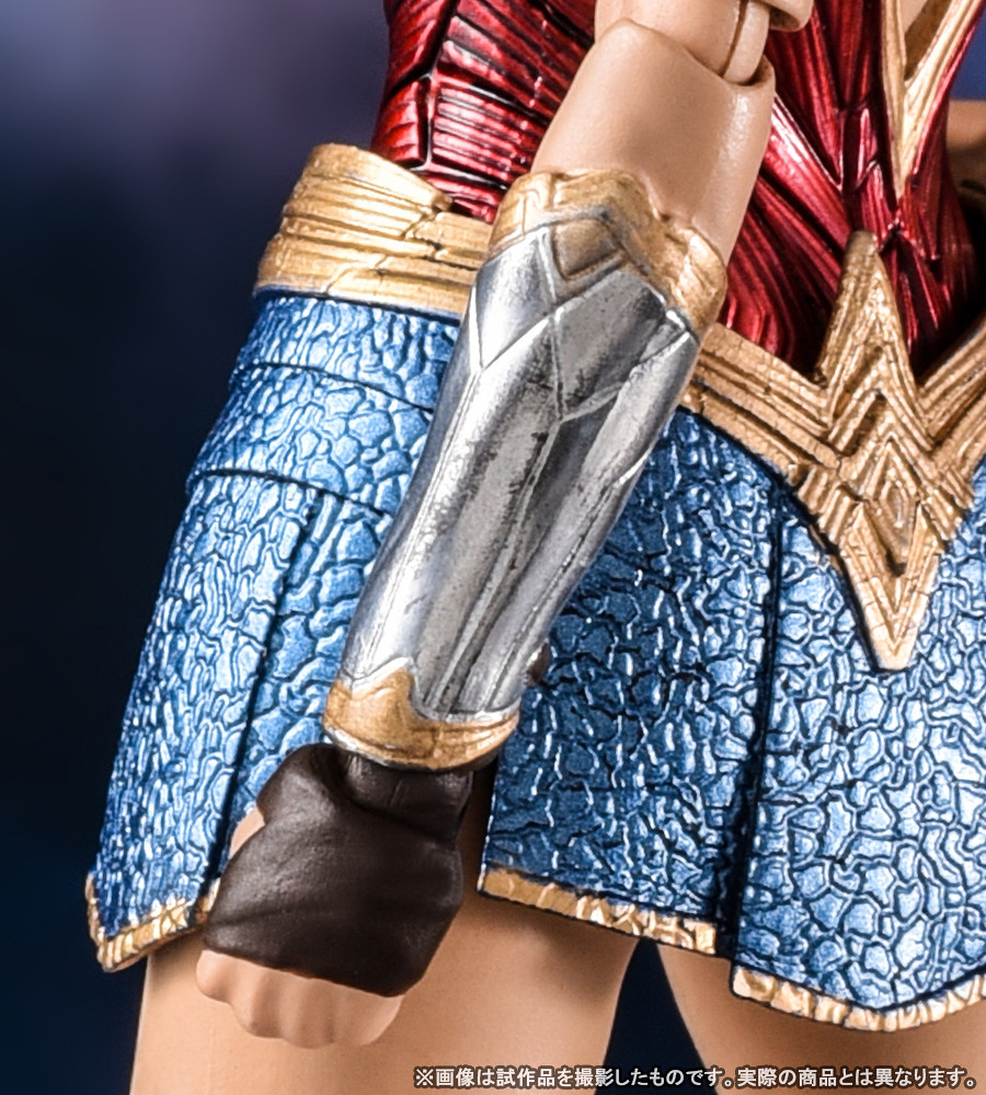 本次的「S.H.Figuarts 神力女超人(WW84)」最令人驚豔的就是像真度大幅提升、真的讓人覺得「好美!」的裸顏頭雕!烏黑的長髮也刻畫出細緻的造型,與之前《正義聯盟》的版本相比,本次 WW84 版的頭飾全是以金色呈現,《正義聯盟》版本中與皮帶相連的真言套索掛鉤這次則是表現出跟腰帶一體成型的視覺效果,雙手前臂配戴、展現出有如電鍍色澤的守護銀鐲更施以寫實舊化,營造出擋下子彈所造成的擦痕,共有兩顆頭雕,並會附上兩種狀態的真言套索零件。