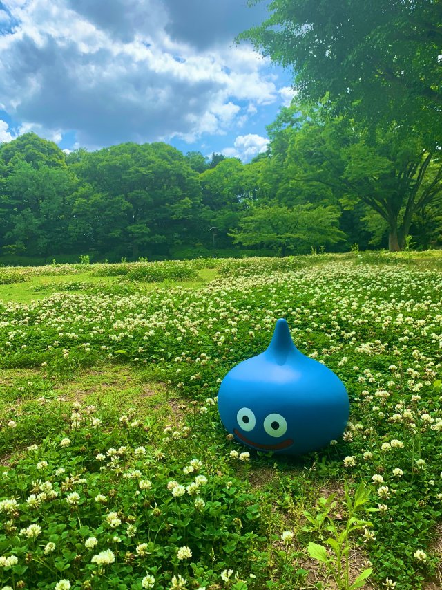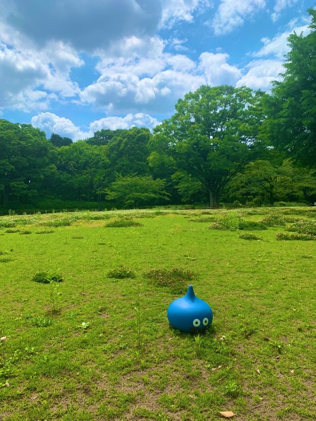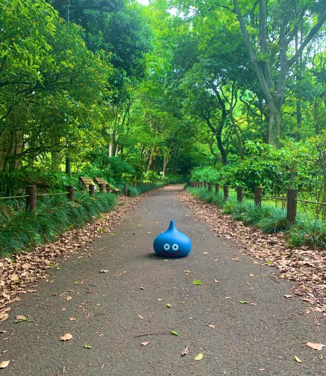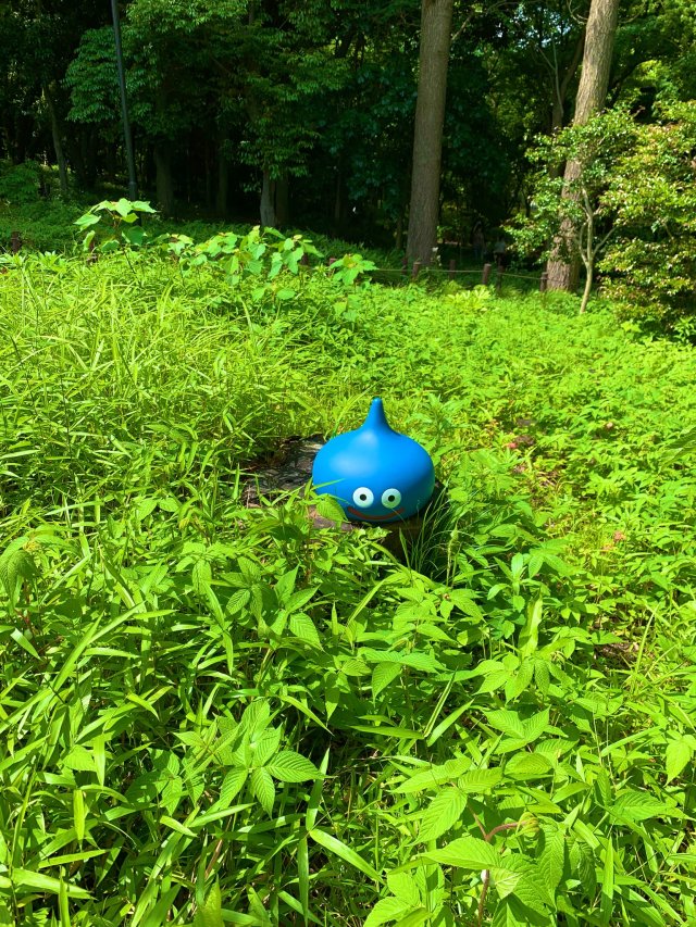 其中就真的有一位推主 Mori Michi(@moritsuu)因為買了等身大的史萊姆後卻不知道要放在哪裡的困擾,想來想去結果就是把它放在路邊的草叢旁當裝置藝術了,這位推主也在內文寫道:「買了這隻等身大的史萊姆後,除了放在路邊上外好像也沒有其他辦法了。」