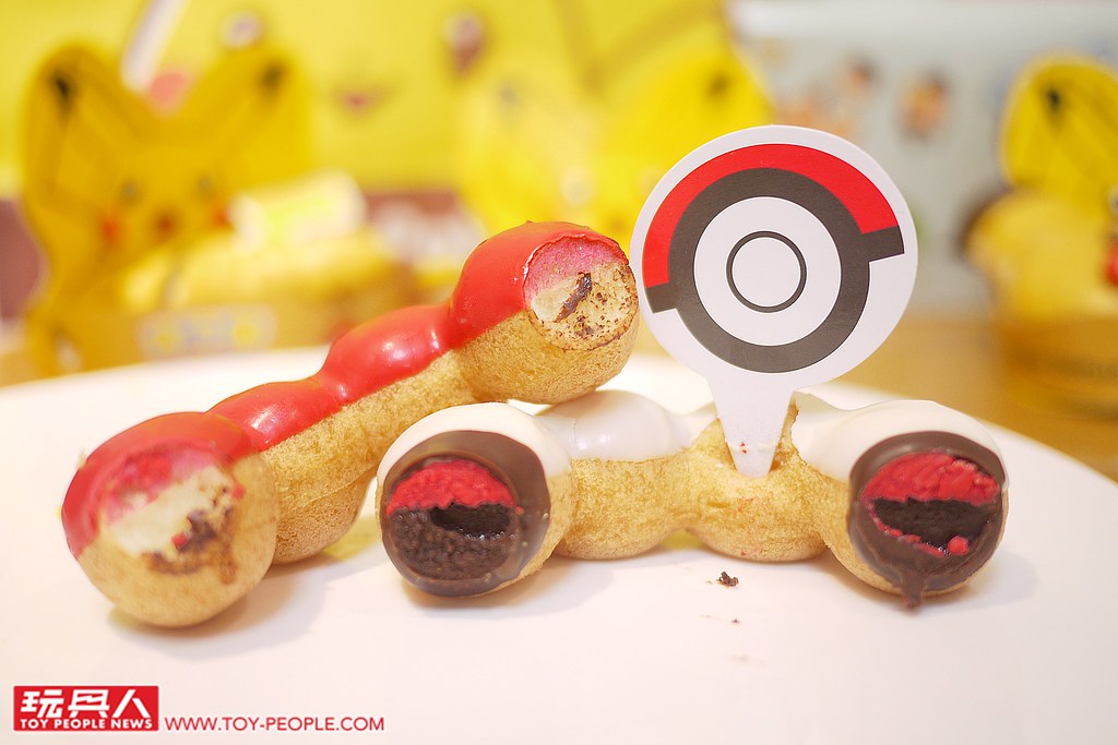 猶豫要先吃哪一款的話,就決定是你了!小編私心推薦先從甜度看起來比較低的波堤下手吧~將人氣商品波堤設計成精靈球的配色,並插著精靈球小紙卡,整體還算是滿可愛的。
