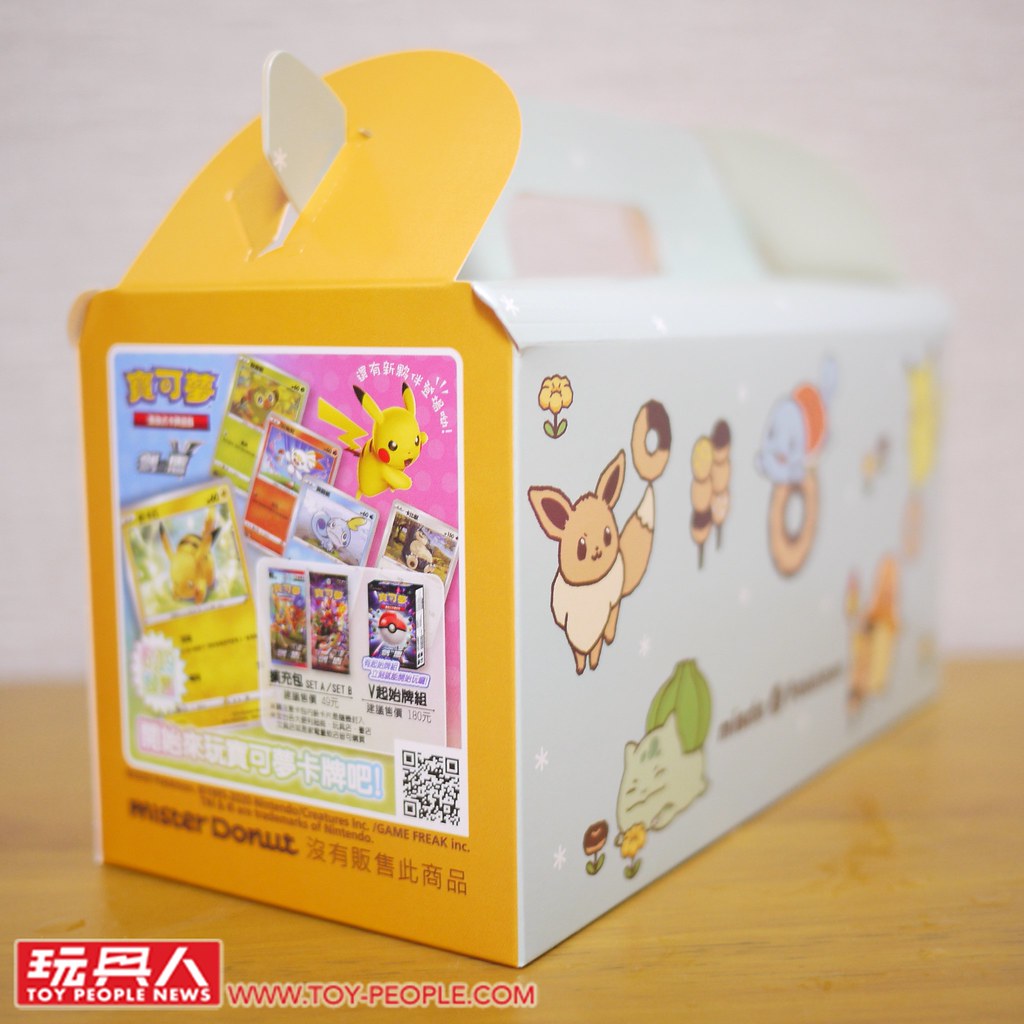 迷你甜甜圈小尺寸的包裝盒也換上限定包裝,一面是皮卡丘造型,另一面是精靈球~搭配現在新品買三送一的活動,可以順便帶一組~