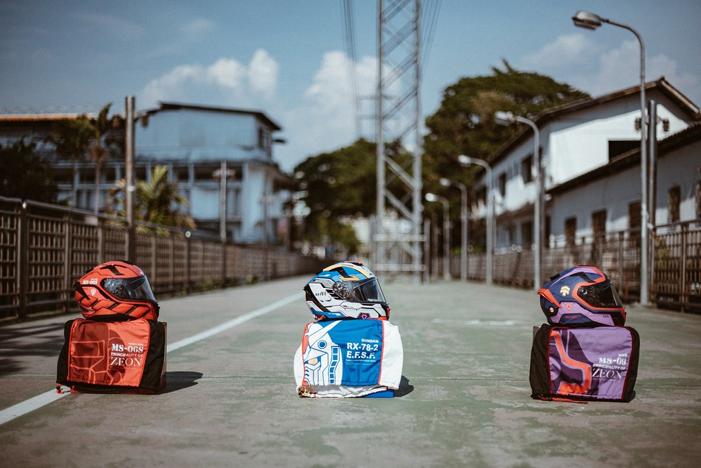 本次的安全帽帽體為 Bilmola 全罩式安全帽 (Full Face) 的 NEX 型號(關於此款安全帽的規格可以到 Bilmola 的官網查詢),在通過 ECE 認證的規格之下,以三架機體的配色重新詮釋,並充分注入《機動戰士鋼彈》中地球聯邦與吉翁公國的元素!三頂都非常搶眼帥氣啊~