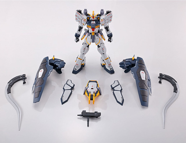 「MG 1/100 沙漠鋼彈EW(犰狳裝備)」以過去推出的 MG 沙漠鋼彈 EW 套件為基礎,運用新規零件再現漫畫《敗者們的榮耀》登場的原創「犰狳裝備」,包含追加推進器的雙肩增設裝甲以及大型化背包,增設裝甲具備多處可動機構,並為可拆卸式設計,可依據不同的跳躍、戰鬥姿態調整,武裝部份則同樣附上招牌的電熱彎刀與光束機槍。