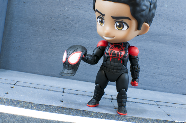 ▲ 另外還有用來表現掀起頭罩樣貌的配件,就是單純套上這樣,讓邁爾斯的陽光男孩臉可以出來透透氣。