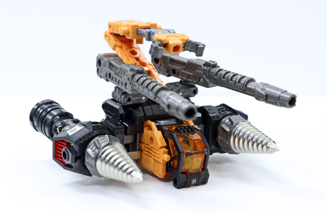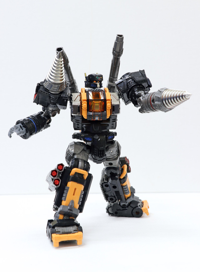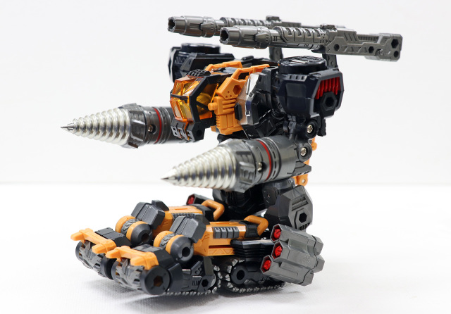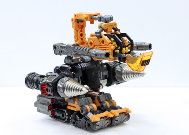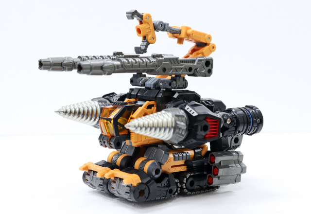 Triverse Tridigger 以鑽地機和坦克兩種元素為主,配色也選用了工程味更濃的土黃和黑配色,肩上有兩個大鑽頭,能夠安裝到手臂上變成武器,並且和之前的三合一機器人一樣,Triverse Tridigger 可以和 Triverse 系列互換配件,組合用戶自定義的形態。