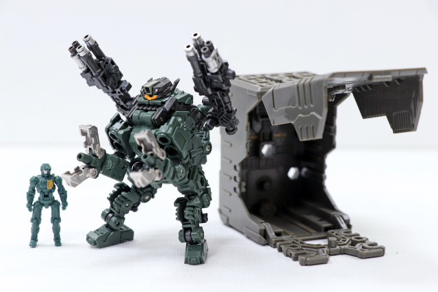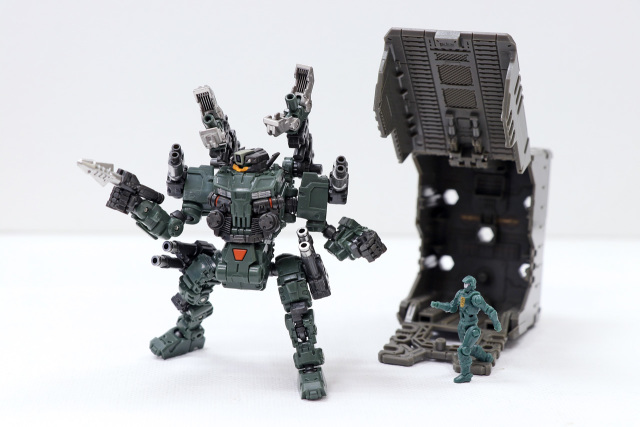 驚異之三段 (?) 變形。和 DA-39 造型一樣,惟配色是更實戰化的宇宙海兵隊顏色。Vipsilon Space Marine Corps 是 PS 系列中搭載最多攻撃武裝的火力攻撃特化型 Powered System,全身上下都可以掛滿武裝。收納狀態時,全部零件也可收入機艙中。雙拳可以加裝零件,如配上巨鉗或連射機鎗,令可玩性大大提高!性價比一般,關節略鬆,外表還不算很 "膠",不知有沒有玩家為他們重塗或舊化。