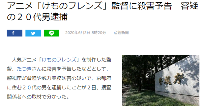 監督在五月初報案,近日在警方搜索下找到位於京都的21歲男性嫌犯岸本福太,儘管他表示因為個人恩怨而沒有要真的犯案,但詳情尚需進一步釐清,無論如何,隨著逮捕新聞發布後,至少讓業界驚慌得以舒緩,該事件也讓我們無法漠視恐嚇所帶來的隱憂。