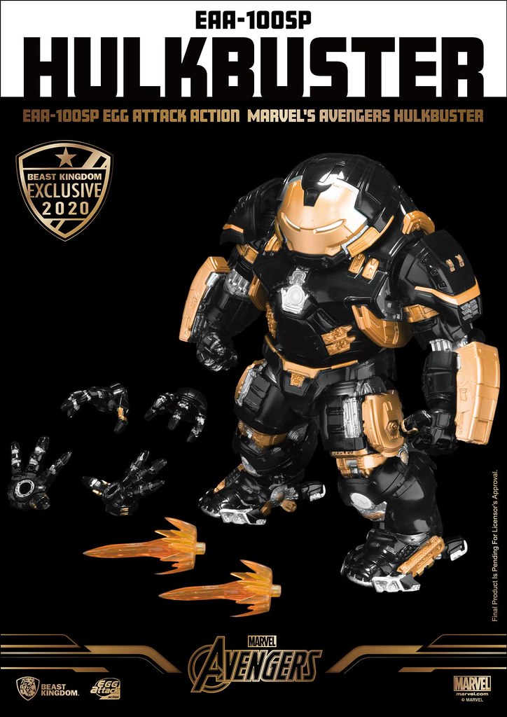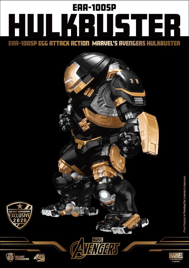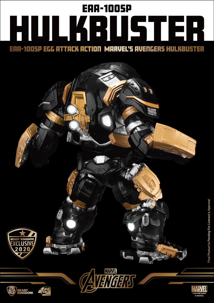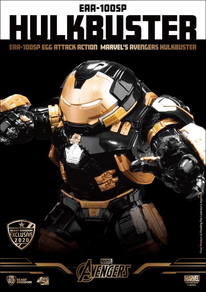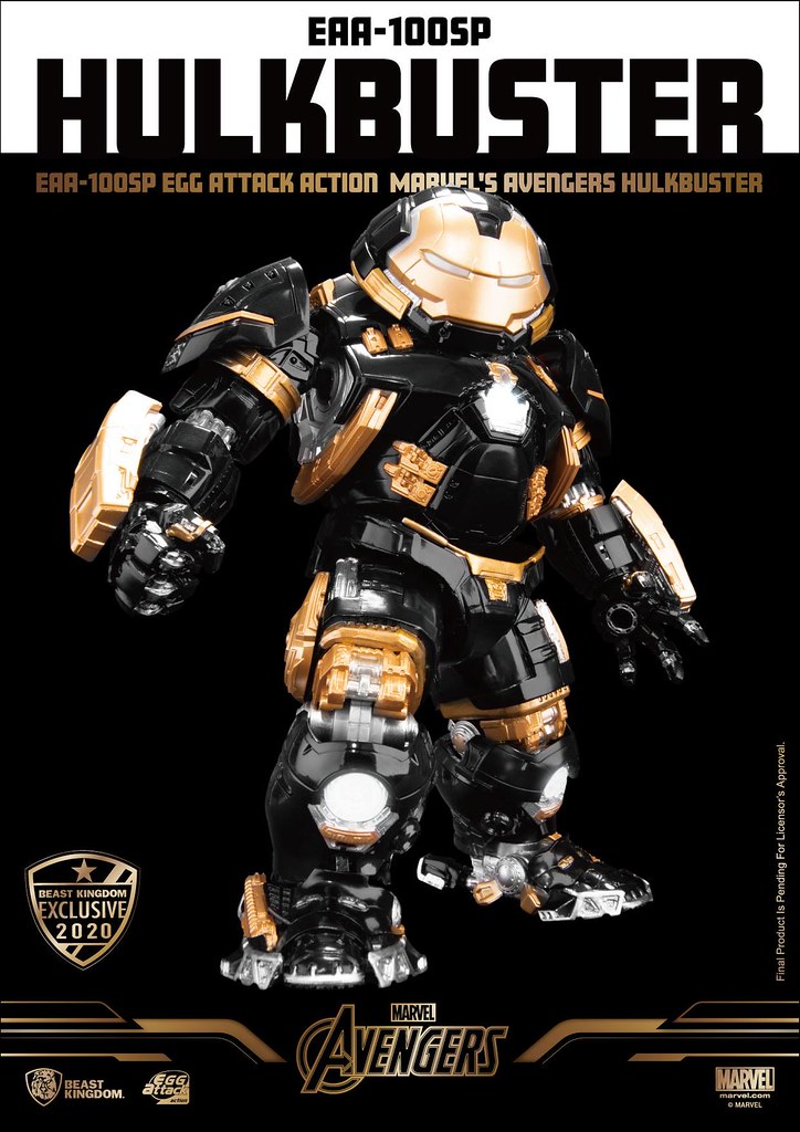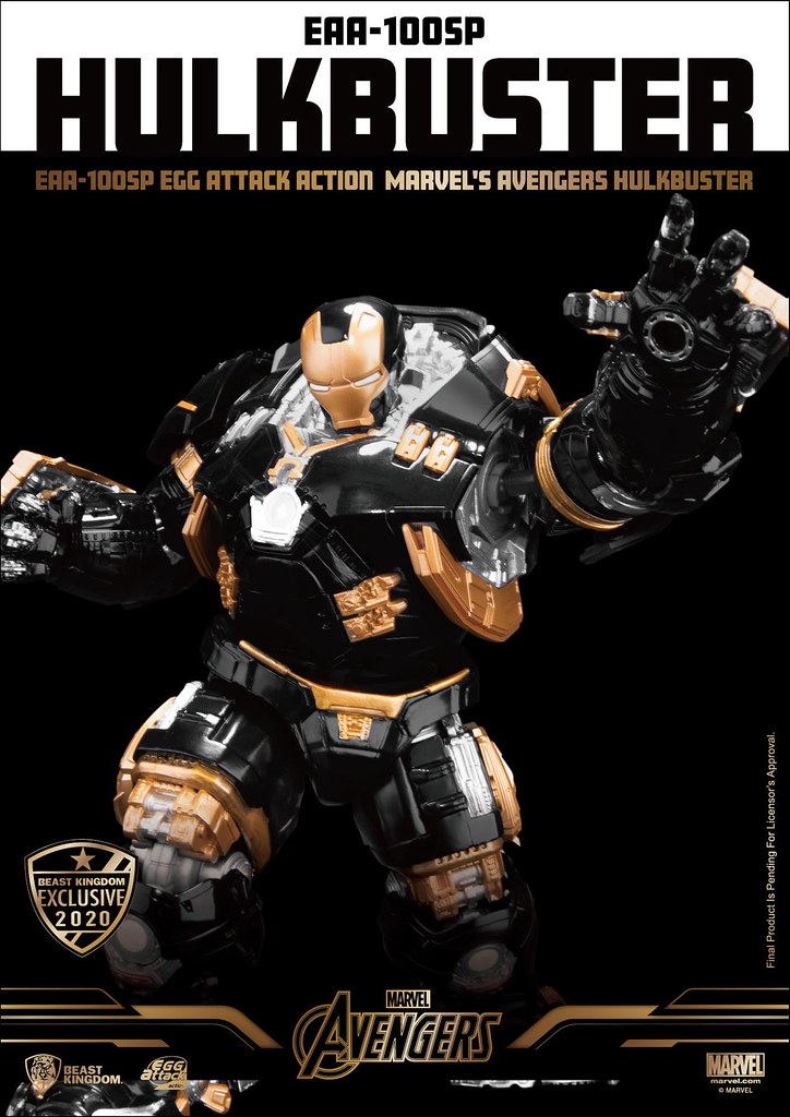 由台灣玩具品牌野獸國(Beast Kingdom)發行,以獨特 Q 版造型、高度可動性為賣點的「Egg Attack Action(EAA)」系列在日前推出重量級的「浩克毀滅者」之後,再度以全新配色發行限量版本的「浩克毀滅者(Hulkbuster) 黑金配色」!全球限量 1000 組,預計將於 2020 年第三季發貨。