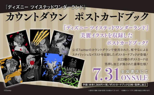 近日於官方公開《迪士尼扭曲仙境》23個角色箔壓明信片冊,實體物將於7月31日於日本各大書店上市,e-STORE於昨日中午11點開放後,更贈送限量的書簽特典,但在中午便被搶購一空,展露出高度的人氣。