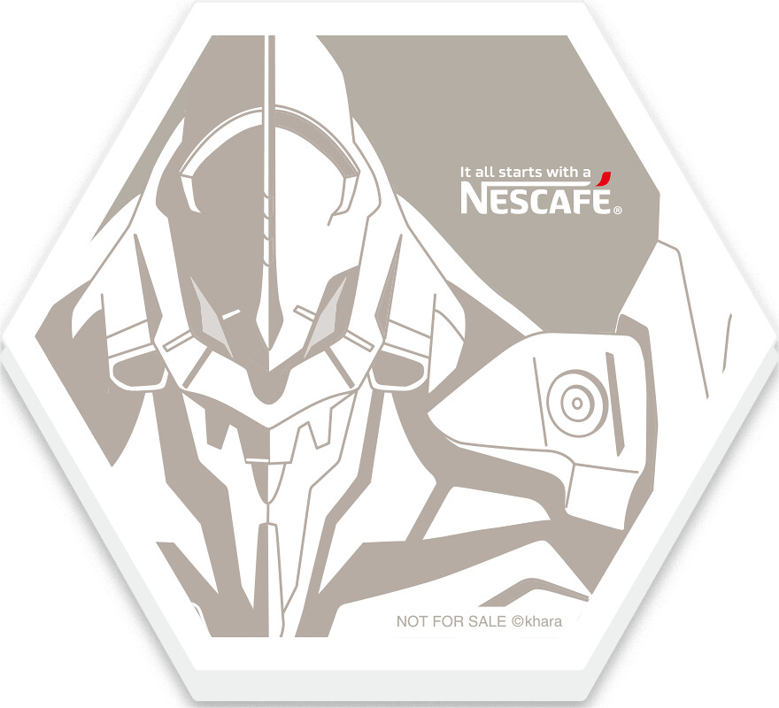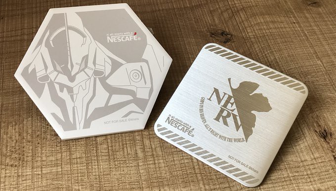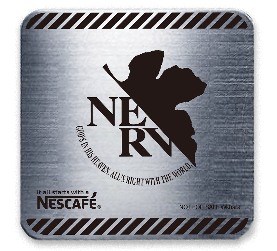另外推出兩款限定的 Nescafe x Evangelion 購入特典,白雲石吸水杯墊與不鏽鋼杯墊,與機身一樣為「初號機」與「NERV」LOGO的圖樣。並有將人氣角色與咖啡配方結合的特設網站(日文),可以依照喜好沖泡自己喜歡的口味。