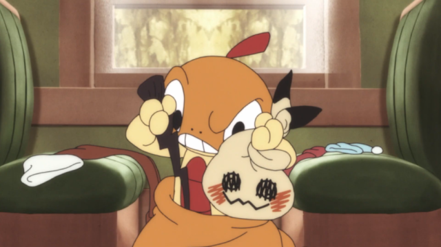 在本次寶可夢選角上也是富有巧思,滑滑小子與謎擬Q都有著外衣的設計,滑滑小子是以蛻皮來呈現出鬆垮褲子;謎擬Q則是為了模仿皮卡丘而披上擬態的外皮,劇情上也表現出其特色,並以謎擬Q「不能觀看其本體」的魔性設定來完結劇情,過程中的寶可豆則成為兩角色衝突的起因。
