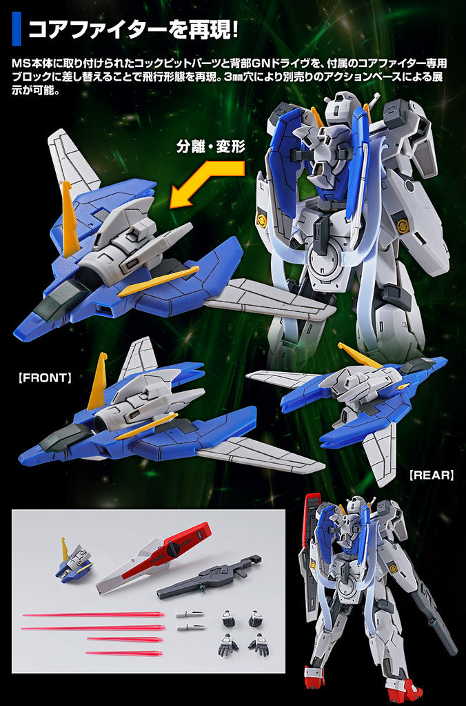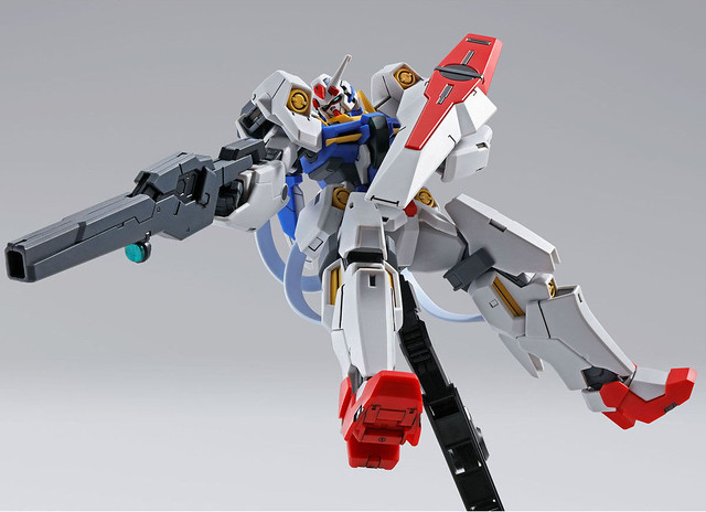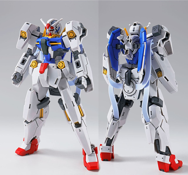 「HG 1/144 審判女神鋼彈」以完全新規零件、多種成形色再現機身造型,使用軟質塑膠製作背部特徵的電纜零件。腕部具備多重關節與拉出式機構能將裝甲展開,膝蓋部份也採用提昇可動的多重關節並重現內藏光束軍刀構造。駕駛艙與太陽爐更能與本體分離,並使用替換零件方式再現核心戰機系統。武裝部份則包含 GN 光束步槍、GN 光束軍刀與 GN 盾牌。