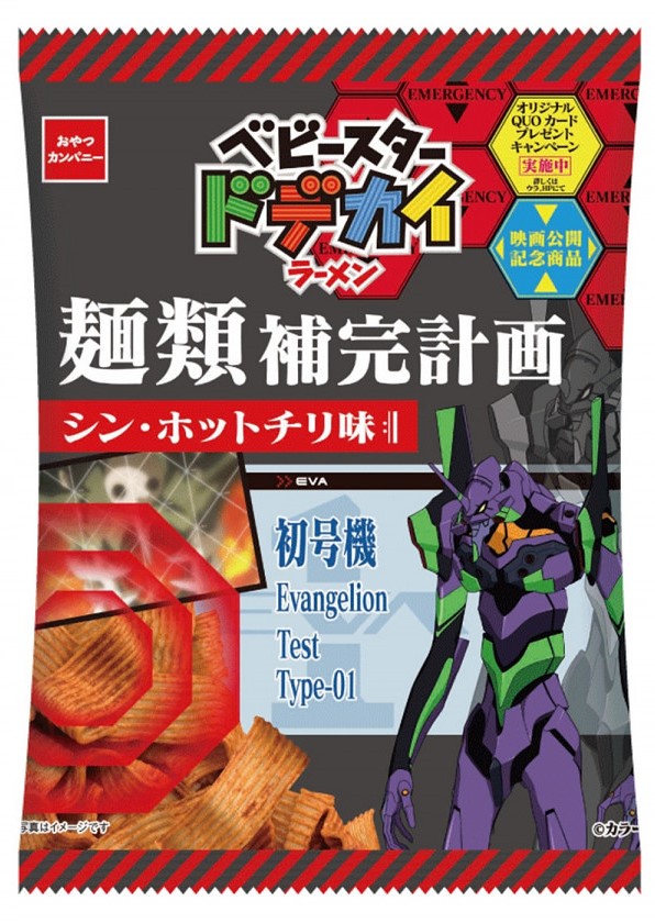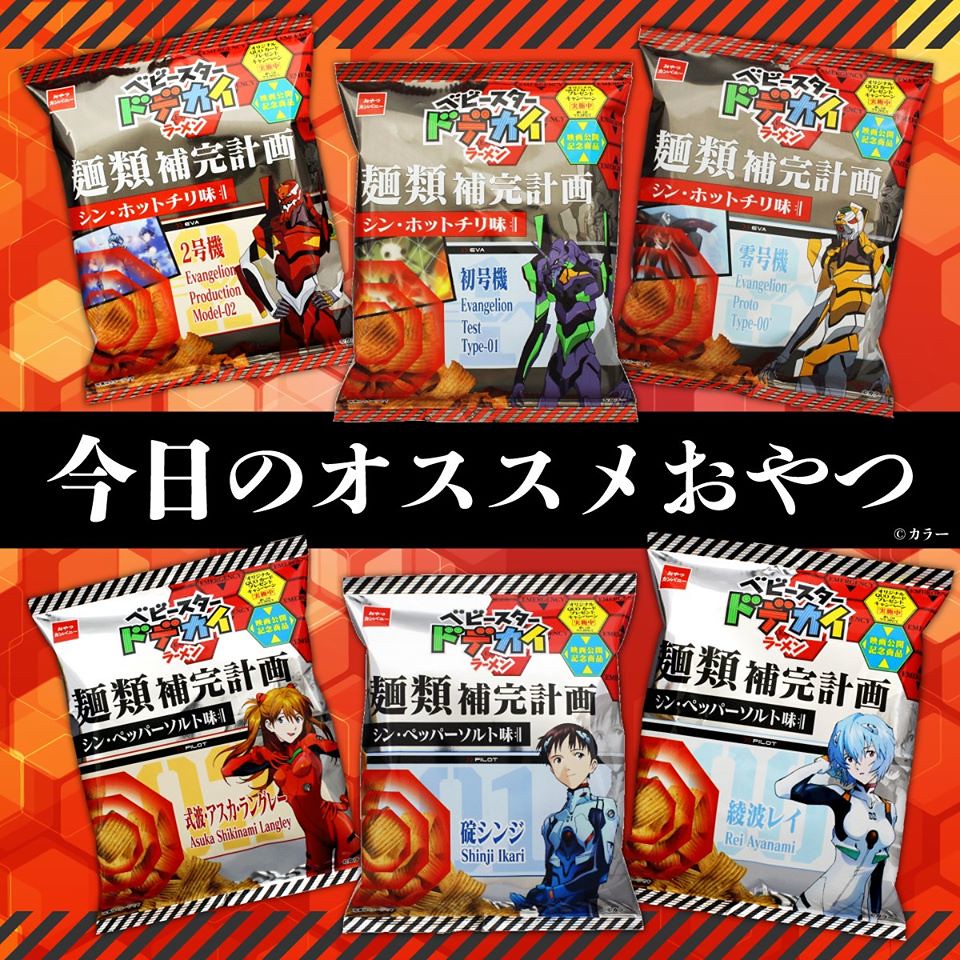 日本經典零食 優雅食 Oyatsu Company(おやつカンパニー)旗下的熱門商品「模範生點心麵」,與原計畫於 2020 年 06 月 27 日上映的《新·福音戰士劇場版:│▌》(目前因疫情影響而延期上映,上映日未定)展開合作,除了推出兩種「新.口味」,還有多款角色包裝!目前已在日本便利商店上架,預定於 2020 年 6 月 22 日在日本超市全面發售。