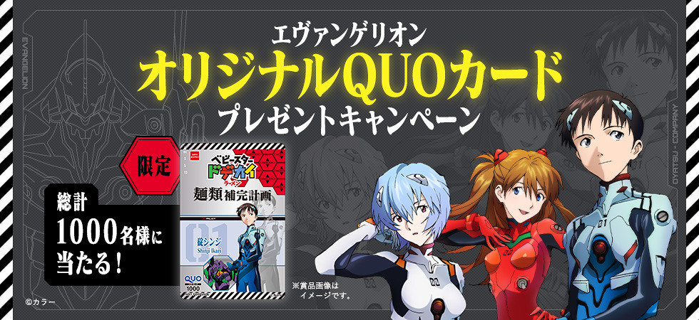 為紀念還沒上映的《新·福音戰士劇場版:│▌》,除了限定包裝之外,也特別在日本推出總共 1000 張的「新世紀福音戰士 原創 QUO 卡」(價值:1000日元)的贈獎活動!詳細資訊可以參考活動網站。
