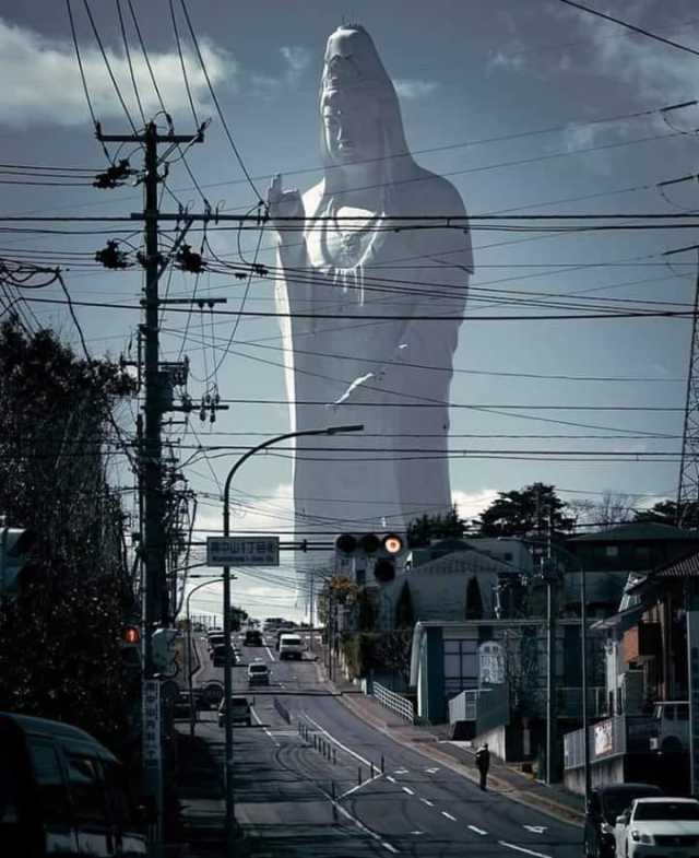 日本東岸著名景點,宮城縣的如意輪觀音像,祂是佛教真言宗的宗教產物,1991年完工後成為世界第一高,而觀音頭上架設的類比電視天線在2012年移除,現在則是全世界第六高的佛像,總計100公尺,可以支付費用搭乘裡面的的電梯往上,內部總計12層(大概能參觀到肩膀位置),內部於木櫃上收藏著108個小佛像,有詳細的介紹。