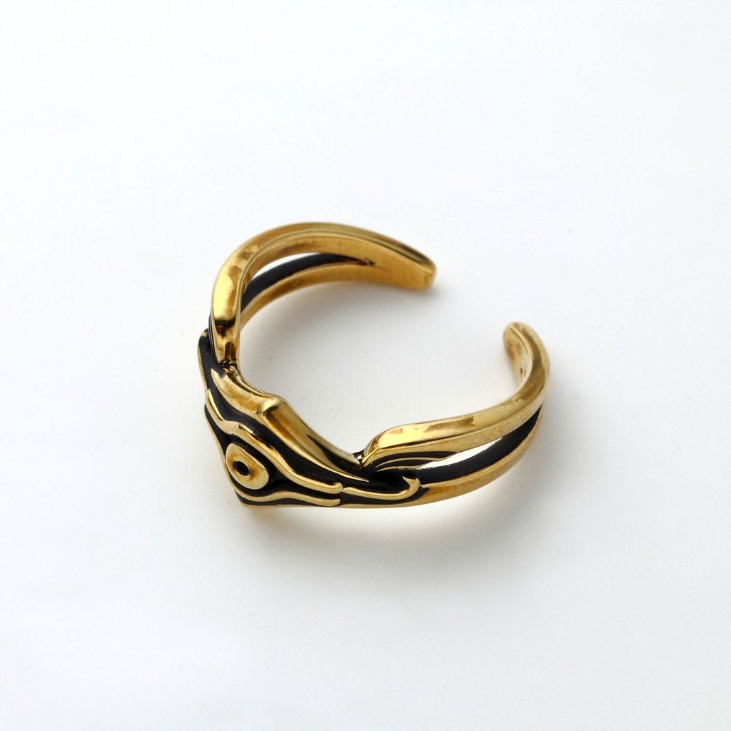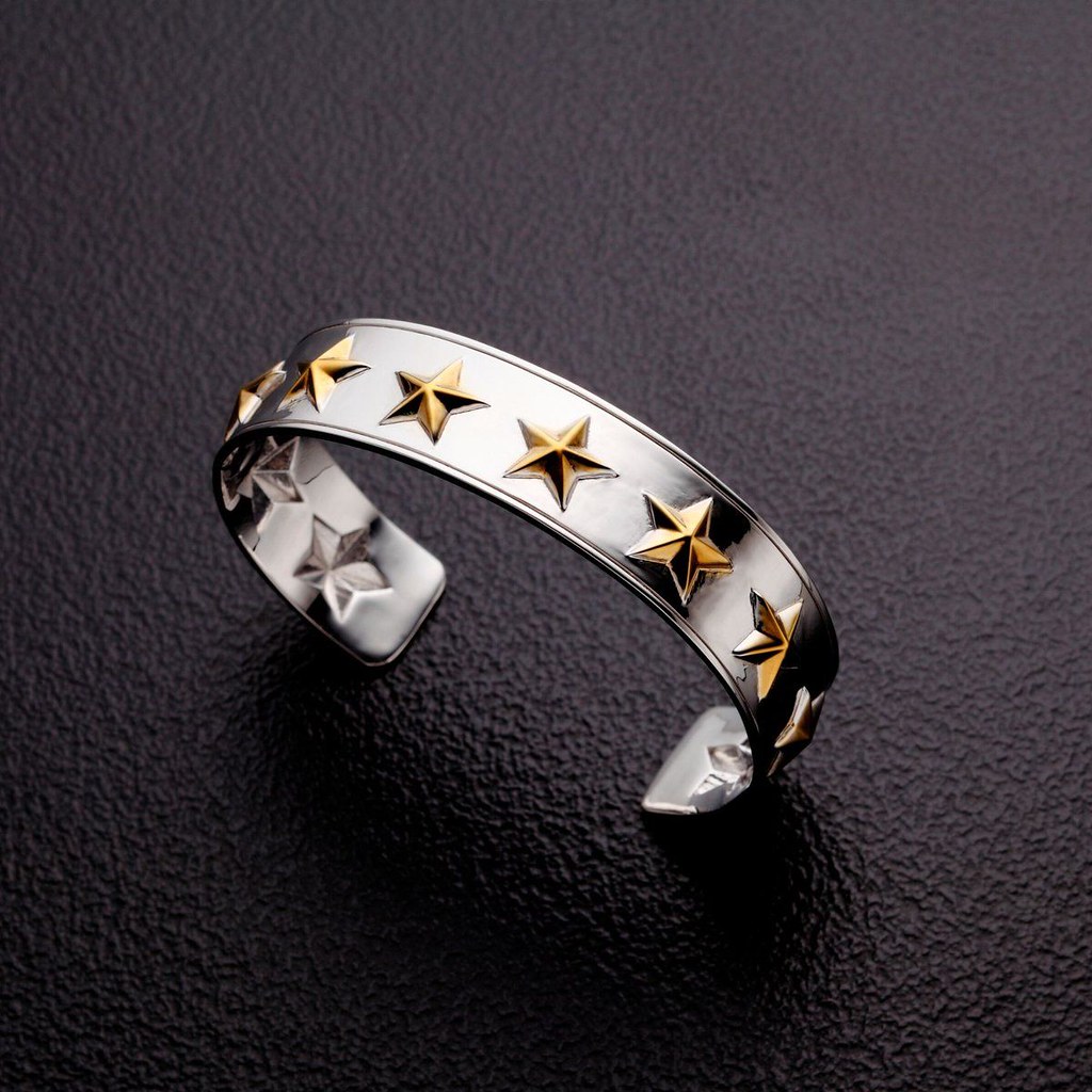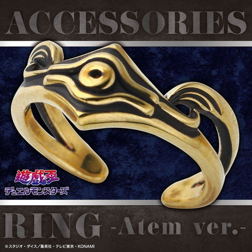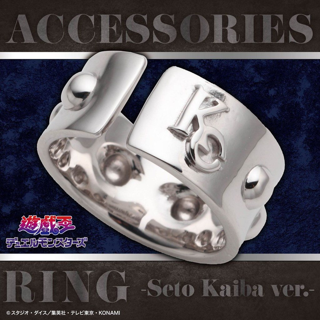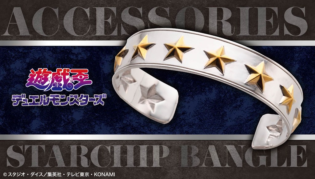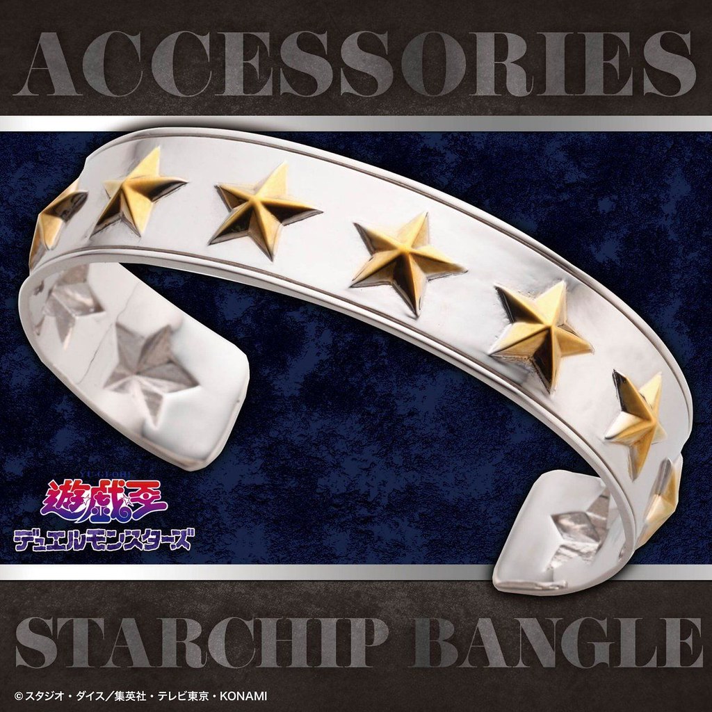 依據劇中登場的「決鬥者的手套」為設計概念,以手環方式呈現「金屬星星手環」內徑為 5.8 公分,採用黃銅(真鍮)製作,外圈的金屬星星皆是一顆顆手工上色完成,而且直接幫你集滿十顆,不囉唆可以直接打 BOSS!另外,本次同樣以黃銅打造的戒指則是以兩位主角「亞圖姆(闇遊戲)」、「海馬瀨人」身上的元素加以設計,亞圖姆版本是以黑金配色為主調,並採用千年神器的標誌性眼睛為造型主軸,而海馬瀨人版本則是把腰帶、前臂護手的元素注入,在極具質感的銀色戒指上刻畫了海馬娛樂集團的縮寫「KC」與圓形突起,中二度滿滿。