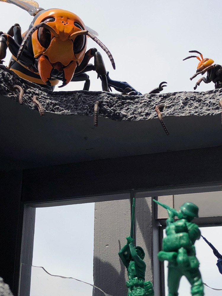 這次推出的第三彈「大虎頭蜂」是分佈於東亞、東南亞一帶的高危險度肉食性昆蟲,身體有著鮮艷的黃、棕色紋路,牠們的毒性強、攻擊性高,飛行時速可達 40km/hr、一天可移動 100 公里。大虎頭蜂通常在春季築巢、夏季頻繁獵補其他昆蟲準備幼蟲的糧食,尤其是蜜蜂。大虎頭蜂的外殼比其他蜂類來得堅硬,蜜蜂的毒針幾乎無法刺穿,不到十隻大虎頭蜂就能將整巢蜜蜂變成糧食。到了秋季的繁殖期為了保護蜂巢,是警戒性最高、攻擊性最強的時期,由於蜂巢築於土中不易察覺,其他動物一不慎就會驚動大虎頭蜂、遭受猛烈攻擊。