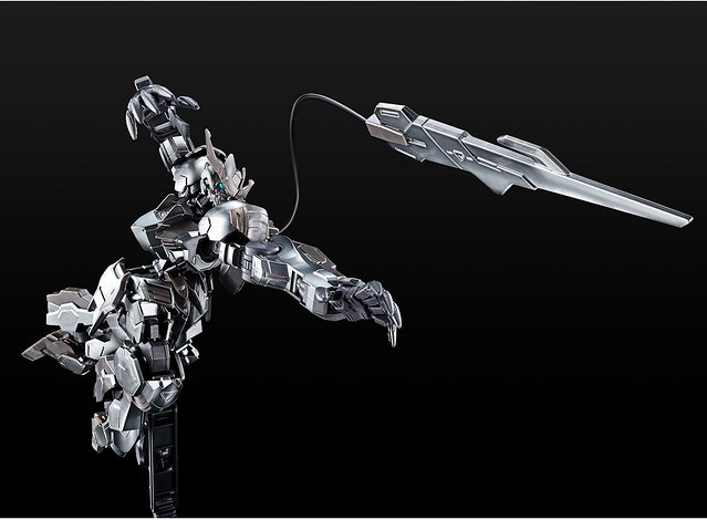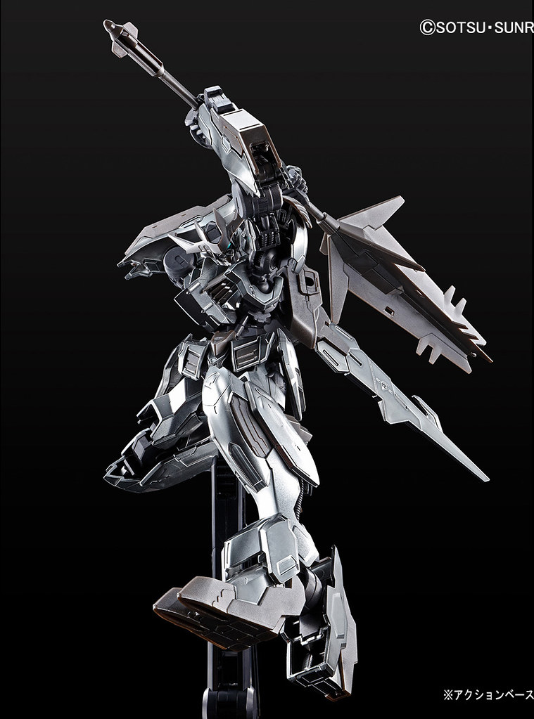 「HG 1/144 天狼王型獵魔鋼彈[鐵血鍍膜版]」套件基本與一般版相同,內附尾鞭刀、超大型鎚矛等武裝能再現狂野的戰鬥姿態。不過原本包含白色裝甲的 C 零件框經過電鍍處理,呈現如同銀白鋼鐵色澤的「鐵血鍍膜」。而其他的 A、B、D 零件框則使用槍鐵色成形,組裝完成後更能突顯鐵血鍍膜,並增加色彩層次。