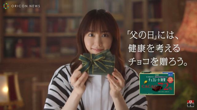 其實說到生日啊,事實上日本知名巧克力品牌 meiji 為了慶祝即將到來的 6 月 21 日父親節,便特別與結衣合作拍攝這支特別企劃廣告,並於在她的生日當天放送,讓這支廣告影片也一併為我們的今日壽星表示慶祝呢!