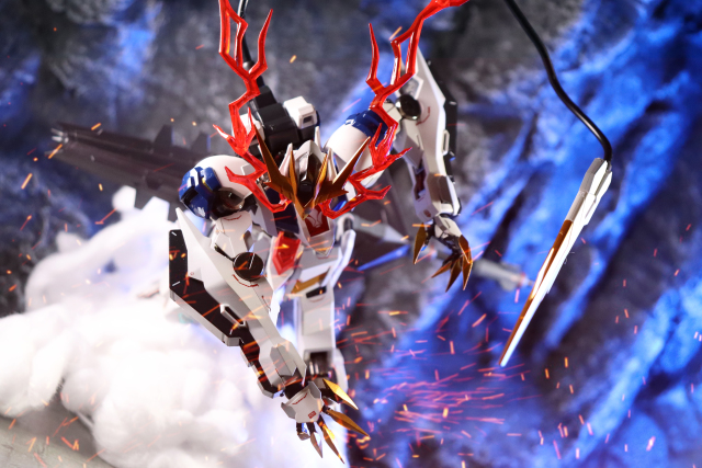 更配有經典武器超大型鎚矛及霸王爪和尾鞭刀。雖然並沒有把尾鞭刀設計成申縮設計,但亦提供了配件還原使用尾鞭刀作戰的設計,最令人心動的一定就是完全與阿賴耶識同步時,展現的紅色型態!絕對值得入手!