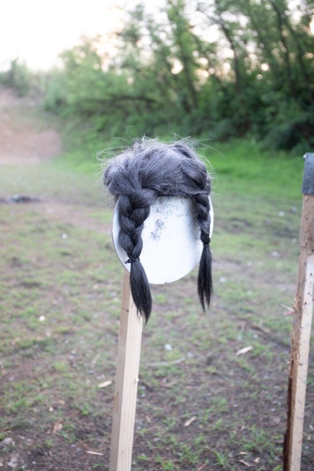 故事中,穆斯卡上校曾經在威脅過程中以手槍威嚇,並將希達的辮子如剃髮般擊落,這與之後短髮造型相互輝映,表示了某種決斷與覺悟,而推主鰐軍曹便從實際的生存遊戲中,試圖還原劇情可能性,也是本次實驗的目的。