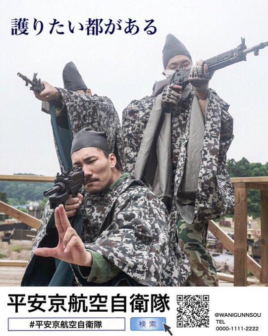 「平安京航空自衛隊」是一種生存遊戲的超級系分支,其設定包含步槍與陰陽術,為了保護城市而集結的秘密組織,並藉由角色扮演與表演推行,在推特中以「マサキタケオ」、「鰐軍曹」等人作知名推手。